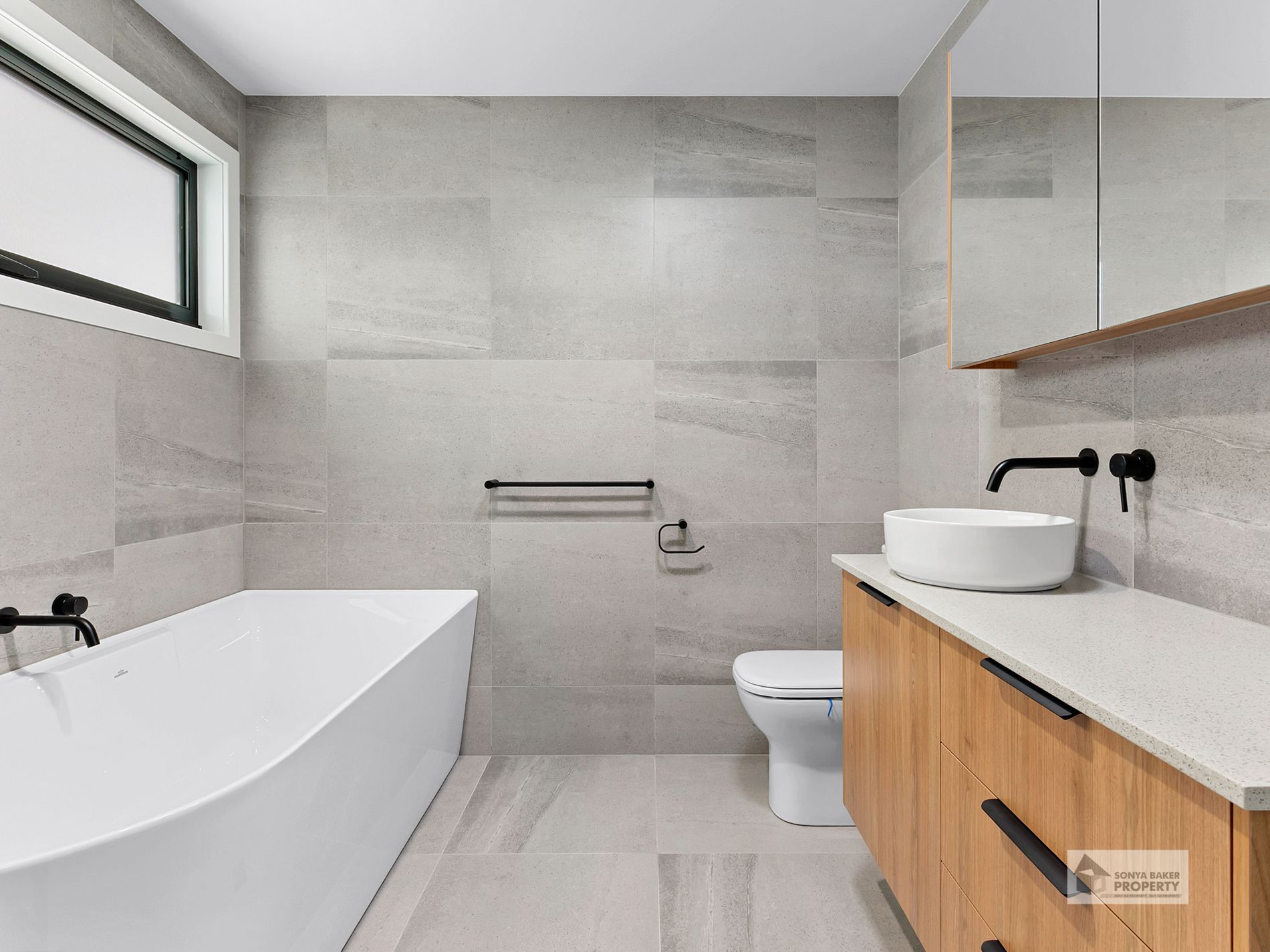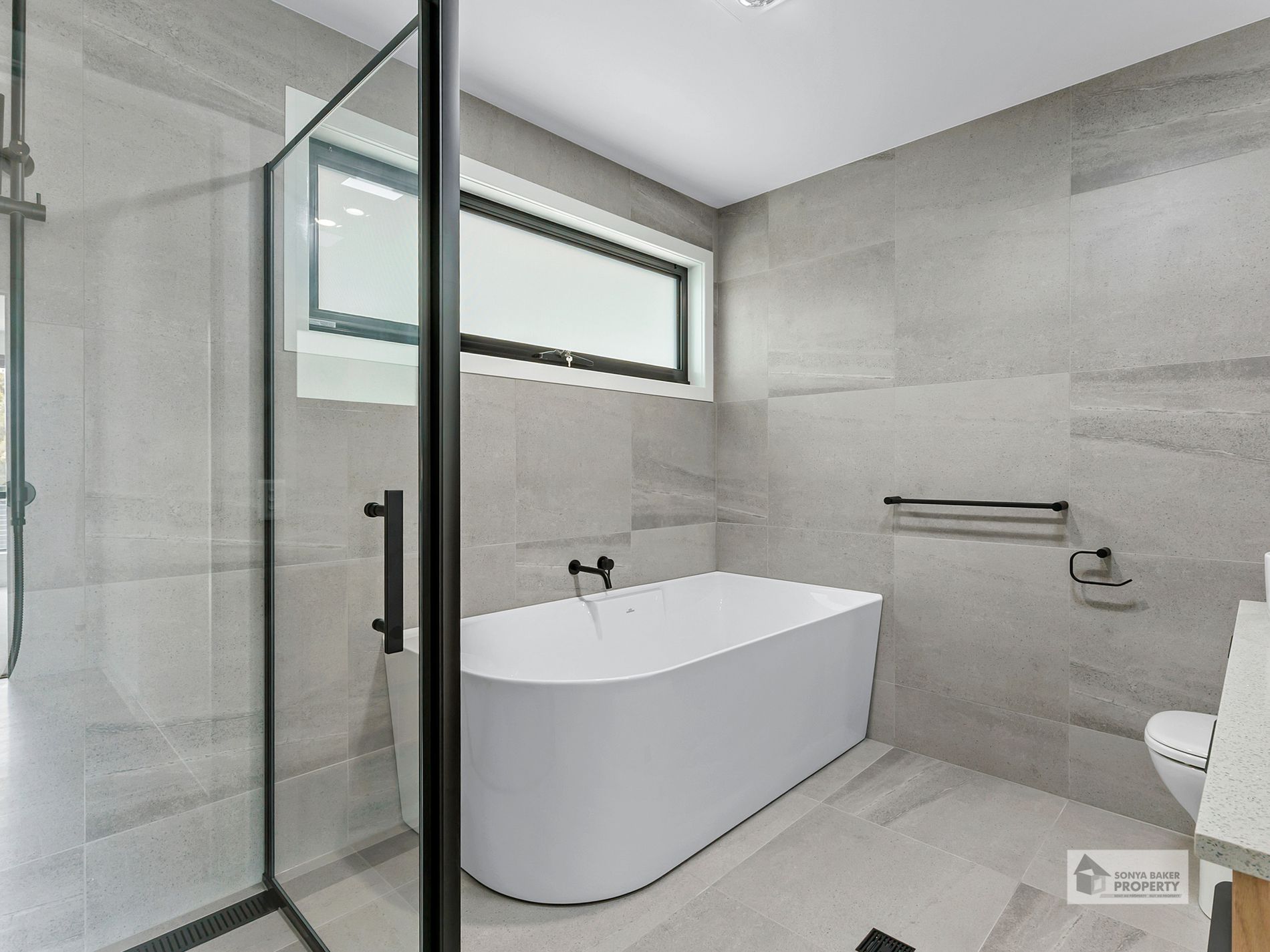 • Modern bathroom with separate bath and separate shower