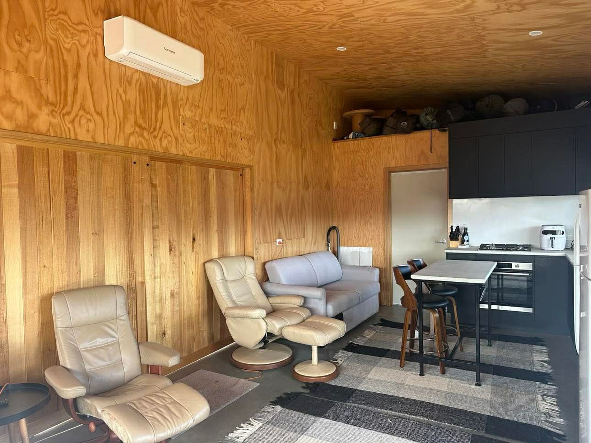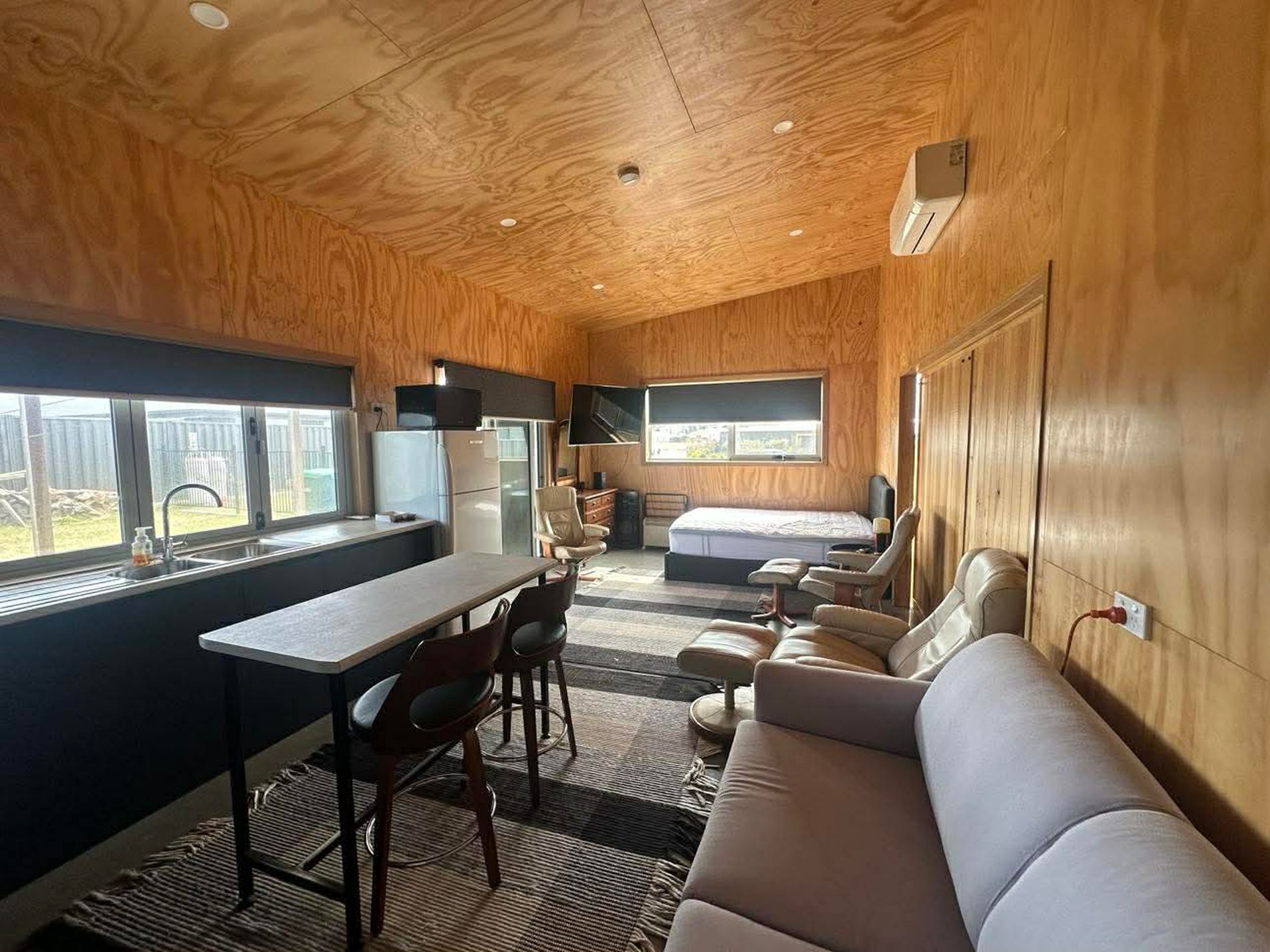 - open‑plan living area is cosy with a heat pump and good insulation