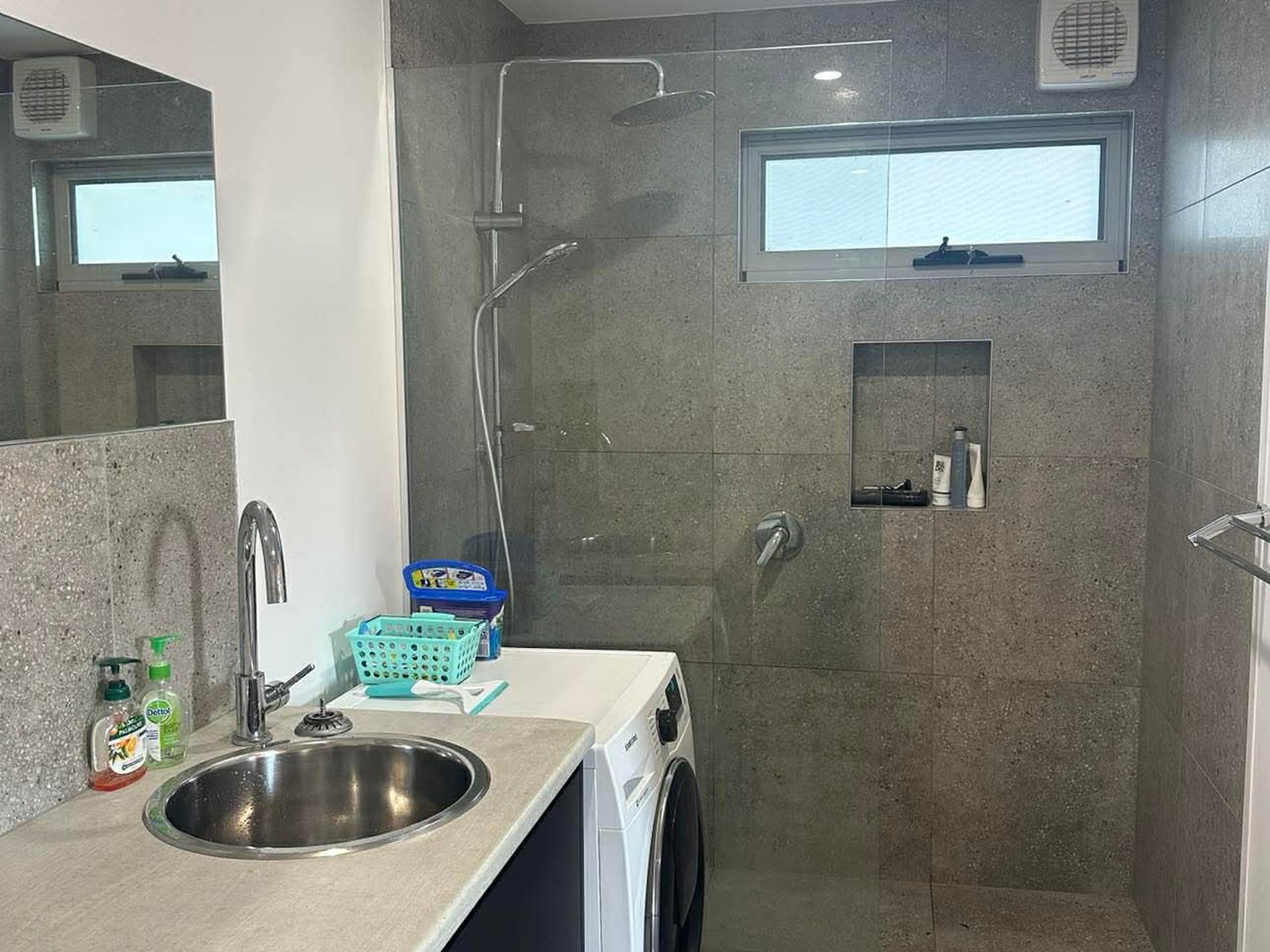 - combined bathroom and laundry offers a walk‑in shower and practical layout including toilet and vanity