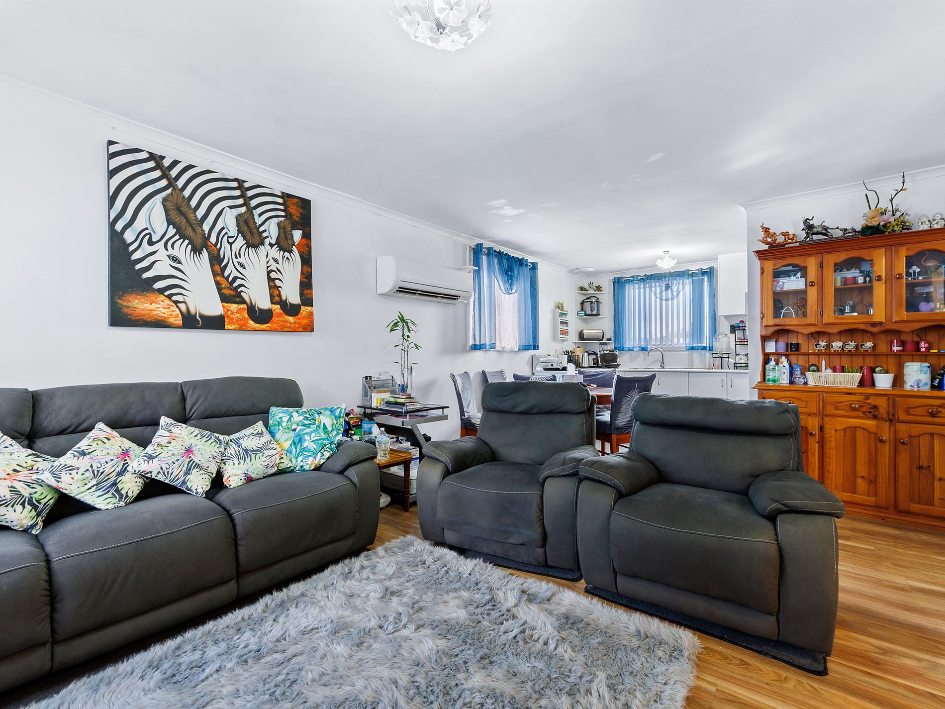 • Open plan living and dining area, which is kept comfortable year round with a heat pump.